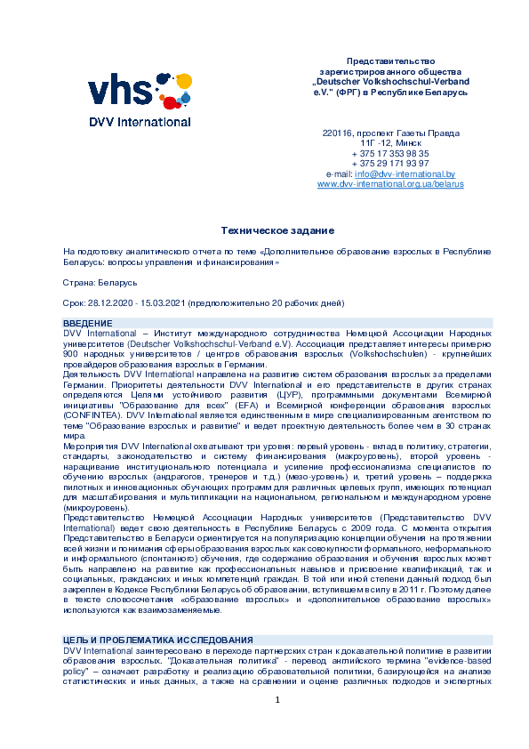 Tender for the preparation of an analytical report on the topic "Additional adult education in the Republic of Belarus: issues of management and financing".