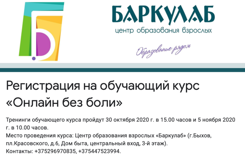 Where: Adult Education Centre "Barkulab" (6 Krasovskogo pl., Bykhov, central entrance, 3rd floor).