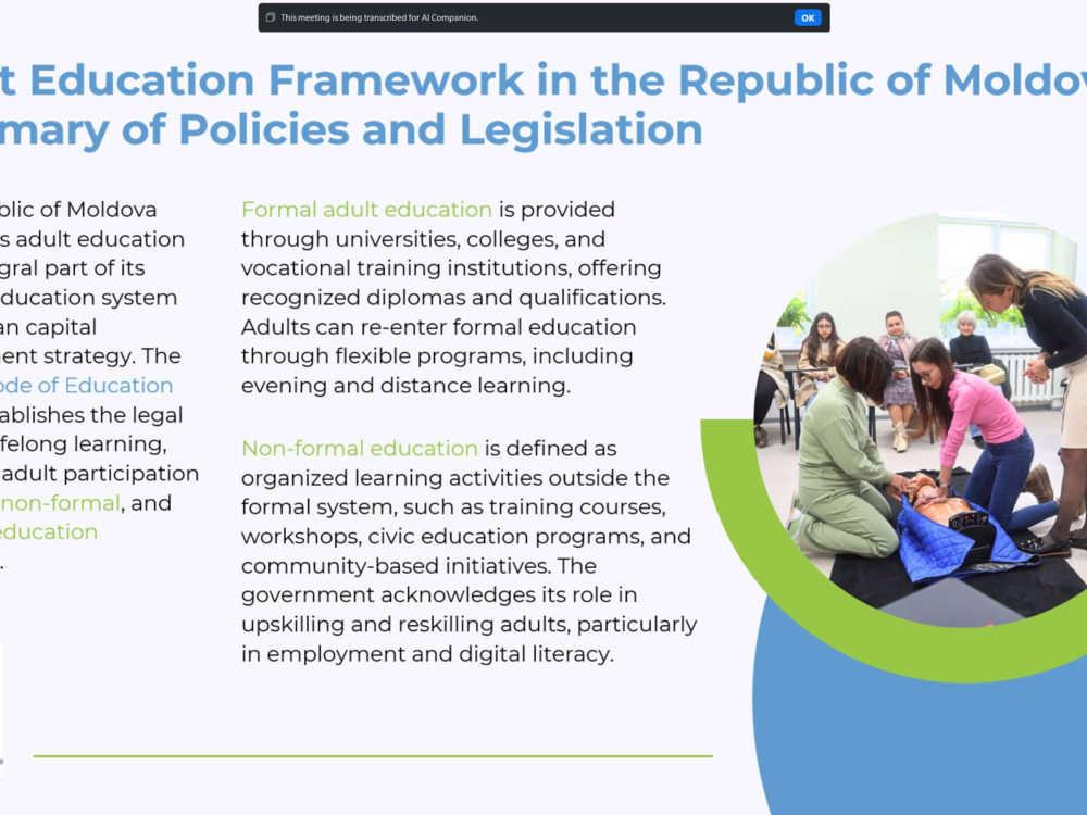 On 9 July 2025, DVV International Moldova, in partnership with the European Training Foundation (ETF), organised a webinar titled “Adult Learning Progress and Development in Candidate and Neighbouring Countries: A Governance Perspective.”