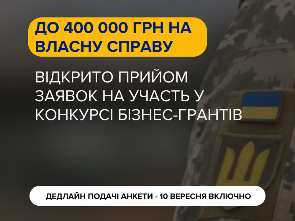 Заявка на участі у конкурсі на підтримку ветеранського бізнесу приймаються до кінця дня 10.09 за посиланням: https://forms.gle/VMXfPatNcEoYLvWBA