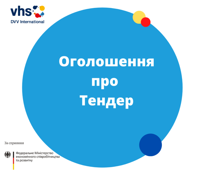 Зацікавлених заявників просимо надіслати документи в електронній формі (тема листа “Tender”) на адресу info@dvv-international.org.ua